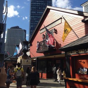 美味しいクラムチャウダーのお店があります。それから'ボストン'と書かれたトレーナー等のお土産、服屋さんとかもあります。個人的にはクラムチャウダーの身のゴロゴロ感は忘れられないくらい良かったです!