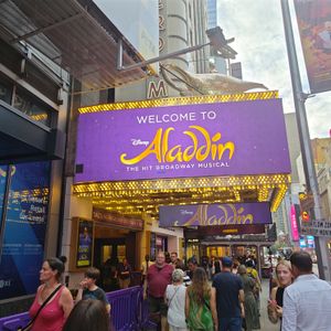 ミュージカルが素晴らしいのは勿論、ニューアムステルダム劇場が素晴らしくてビックリ。建物を見に来るだけでも良いと思えるレベルでした。英語はカタコトですが、ストーリーを知っているのでちゃんと楽しめました。ホールニューワールドのシーンが一番印象に残っています。是非、時間が合えば見に行って欲しいです。