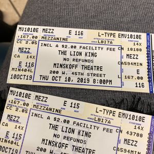 初めての観劇のためチケットの受け取り方法が分からず入口で戸惑ってしまいました。現地公演スタッフに聞いて、チケットオフィスでチケットを受け取ってから入場して無事に舞台を見ることができました。$10で音声ガイドを借りてみました。日本語訳ではなくセリフ以外の舞台進行のための状況説明で、(日本版も見たことがあるせいか)背景などの説明が分かりやすかったです。