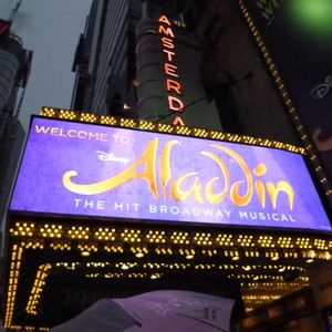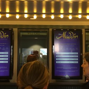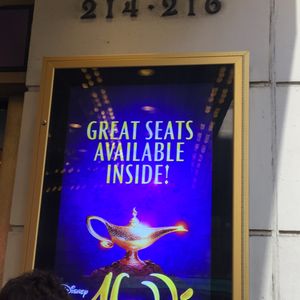 アラジンは、6月に実写化されるとの事で現地でチケットは早く売れ切れてしまうとの事でした。事前に買っていった方がいいかもしれません。バウチャーをチケット交換所で交換してはいります。3階席でしたが真ん中あたりの席だってので十分にみれました。