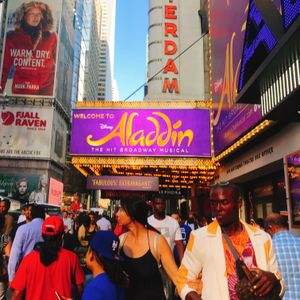 参加者は、全員外国人の方で、とてもいい雰囲気でした。ガイドさんも、すごく親切で、楽しかったです。ブロードウェイの詳しい内容に加え、ニューアムステルダムの面白い歴史も知ることができました。アラジンを見る日の朝だったので、余計にテンションも上がり、セットも見たところだったので、ミュージカルを最高に楽しむことができました。