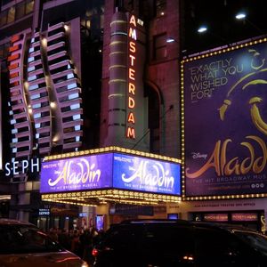 N.Yのミュージカルは3回目でしたが「アラジン」は大人気ということでチケットの手配をお願いしました。当日券を買おうとした方はもう予約がいっぱいですと断られていたので、あらかじめお願いしていて良かったです。席は中央で見やすくいう事なかったのですが、空調の真下で上着を持って行ったのですがそれでも寒くてブルブル震えて見ました。近くの日本人の観客の方もずっと寒い寒いと言っていました。これが一番きつくて残念でした。