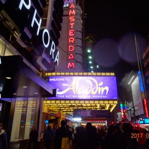 直前までバルコニー席か1階かで迷いましたが、バルコニー席で正解でした。劇場はマンハッタンで一番由緒ある劇場だそうで、内部は素敵な装飾で始まる前からおとぎの国に入り込んだようでした。入口でチケットを受け取るところから、エレベーターのボーイさんまでみなさんプロフェッショナルで、長年のミュージカルの歴史というものを感じました。アラジンは映画で見ましたが、実際のミュージカルで見るのはまた格別です。耳慣れた曲も多く主人ともども楽しみました。
