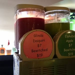 会場に入ると(他の観光地同様、セキュリティチェックあり)会場内のあちこちに既に演出が施されています。販売する飲み物まで(写真参照)。Wickedに扮して写真を撮るコーナーもありました。