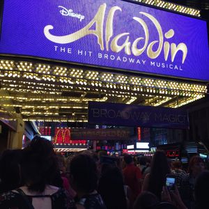 ニューヨークに行くからには絶対にブロードウェイでミュージカルを観ると決めていましたが、英語力がなく、高校生の子供もいるので内容も曲もある程度わかるということでアラジンにしました。やはり全てのセリフを理解はできませんでしたが、とても楽しめて大満足でした。席もそんなに前方ではありませんでしたがほぼ中央だったのでよかったです。ただ自分の前の席が大柄な白人男性だったので見えにくかったのがちょっと残念でした。