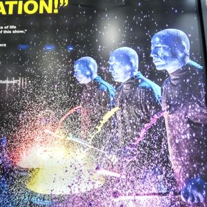 日本公演を観た事が無かったので、初めてのブルーマン!もっと音楽がいっぱいかと思ってましたが、かなりお笑い寄りでした。笑える部分もいっぱい有りましたが、食べ物を粗末にしたり、遅刻してきた観客をイジリ倒したり、観客にペンキかけてキャンバスに人型作ったりと、お笑いがちょっと古典的。子供達が舞台に向けて叫んだり、観客一体型な所は、さすがアメリカって感じでした。日本で観た事ある友達に、バナナピューレが飛んでくると聞いてたので、ちょっと潔癖な私は、2階席にしましたが、1階2列までは、皆さんカッパ着てて、それでも汚れてる方もいたので、2階にして大正解だったと思います。