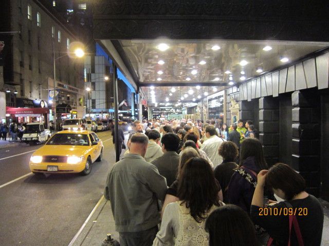 ミュージカル後はものすごい人の数でタクシーがつかまらないと聞いていたのですが、月曜日は上演しているミュージカルが少ないらしく(ガイドさんの話だと5つぐらいとのこと)、比較的簡単にタクシーも捕まえられそうな感じでした。女性2人でヒルトンまで歩いて帰りましたが、同じように歩いている人も大勢いて、危ない気配もなく安心して帰れました。警察官もいたるところに大勢います。(そうはいっても、油断は禁物ですが)