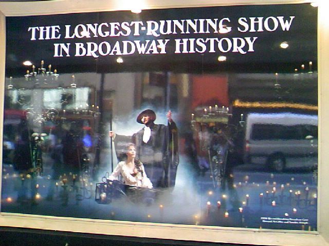 「オペラ座の怪人」をマジェスティック劇場で見ました。席はとても満足のいく中央前方の席でした。念願の本場ブロードウエィで、オペラ座の怪人を観劇することができ、とても感動しました。日本でも観ましたが、やはり、本場ブロードウェイは、素晴らしい。おかげで、その後の旅が、いい旅になりました。ありがとうございました。