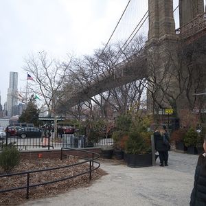 ブルックリン橋のたもとでは、ガイドさんは車から離れられないので、