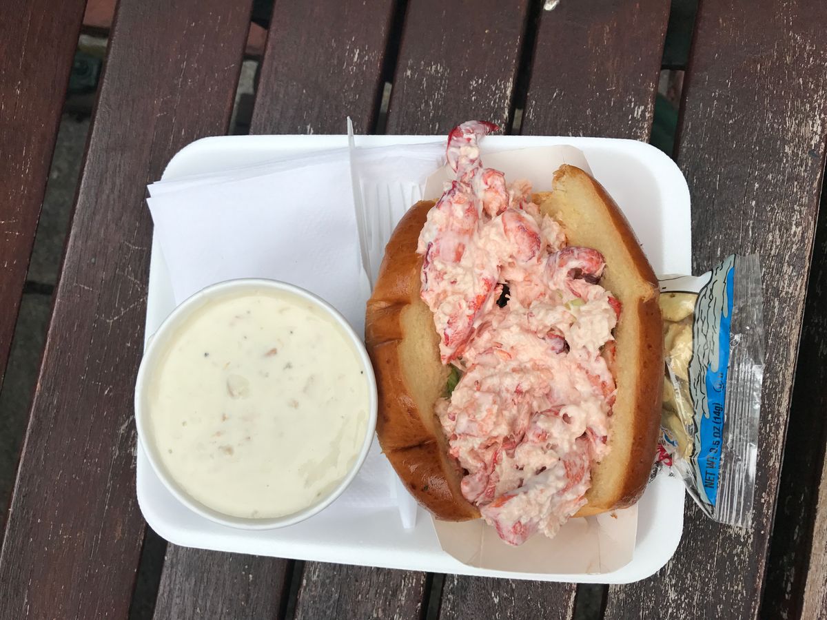 マーケットのロブスターロールはとてもボリューミーで美味しかったので、ぜひご賞味ください。