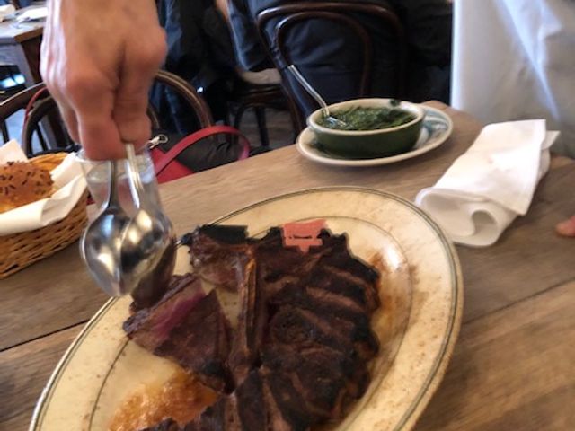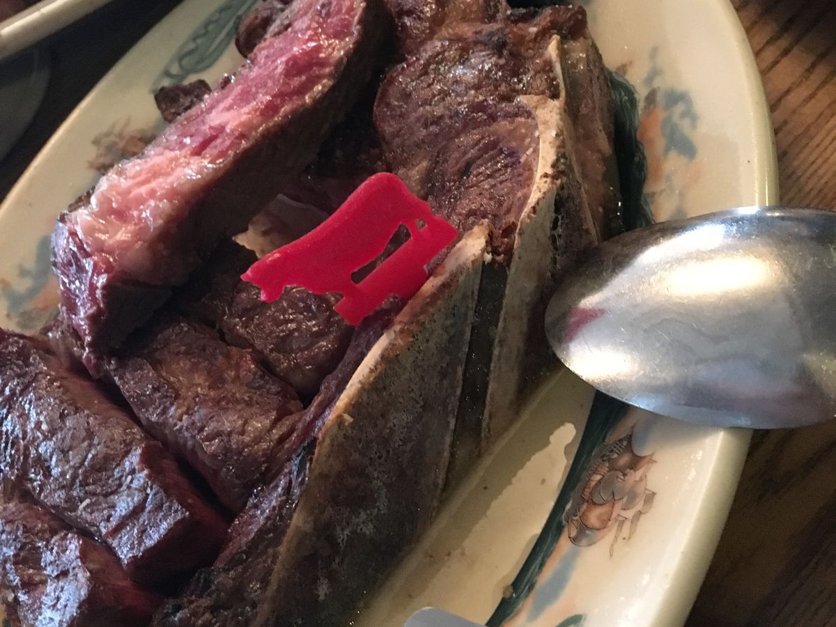 予約してあったので、すぐに席に通してもらうことができ、Tボーンステーキを注文。ホントに肉がやわらかく、外はカリッと中はジューシーで、とにかく美味しい!付け合わせのポテトやパンもすごく美味しくて満足でした。