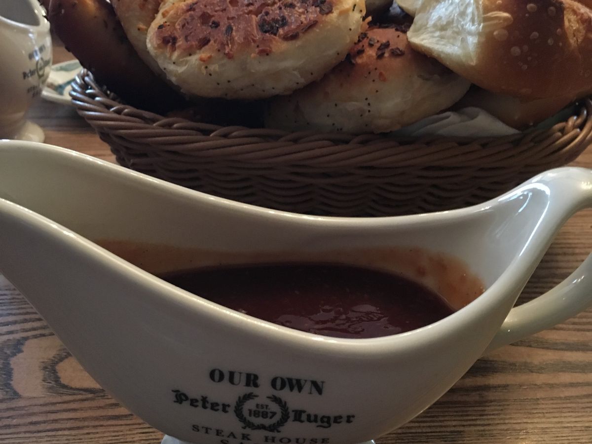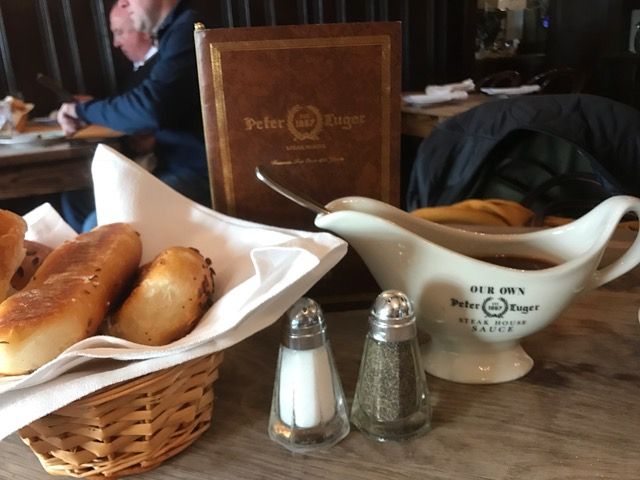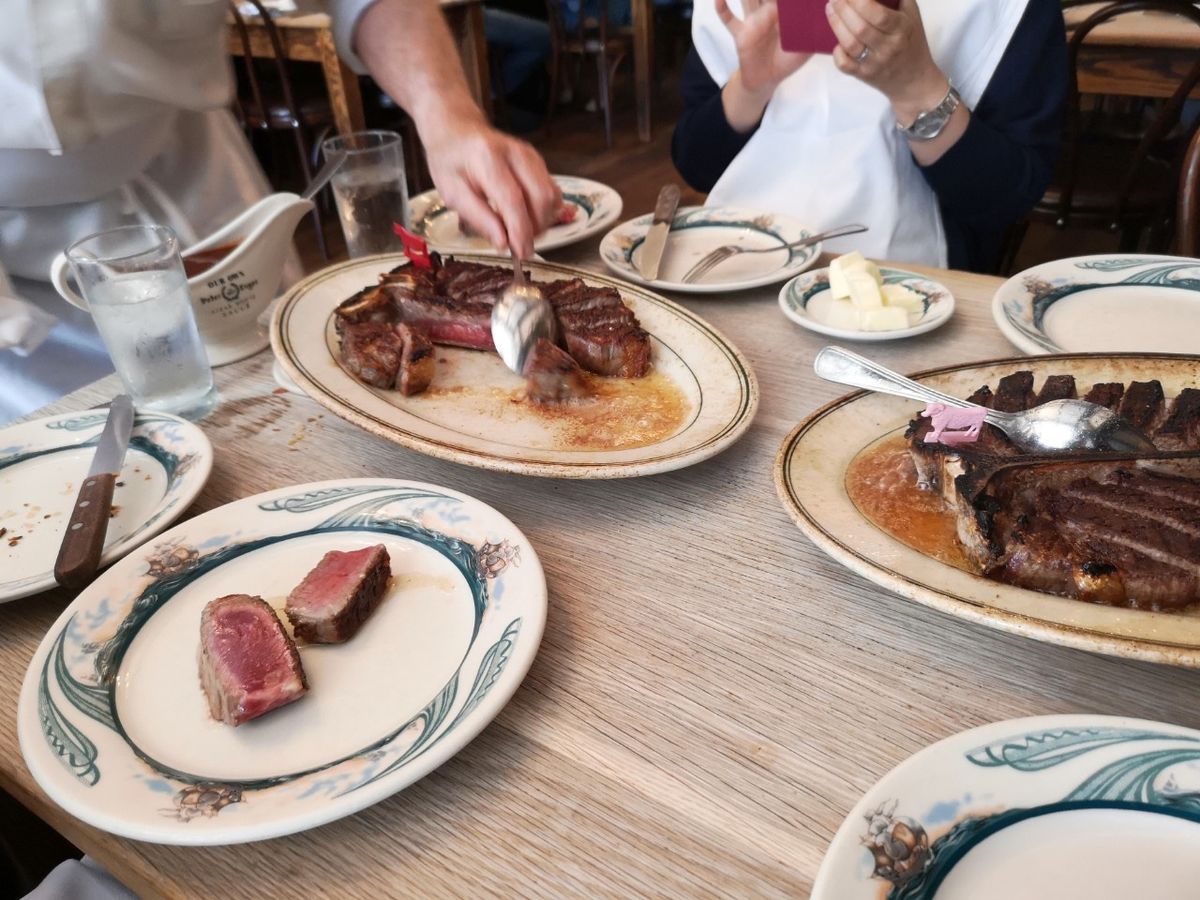 ピータールーガーは、東京で食べることができない味。日本で言うなら静岡のさわやかように、その場所に行かないと食べられない、オープンテーブルでも予約できないとのことなので、ベルトラさんから予約しました。NYでは、ウルフギャングもギャラガーも行きましたが、お肉の脂の旨味が抜群なのはピータールーガーだと思いました。さすが、お肉の国だなあと感心しきり。