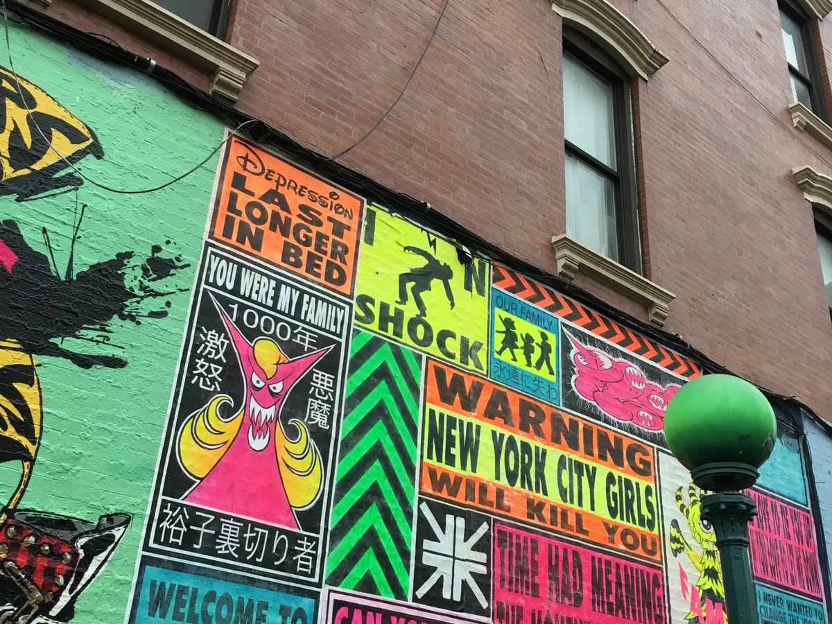 食事の後の散策も楽しかったです。レインボーカラーのベーグルのお店がありましたがテレビでも紹介された話題性のあるお店です。味は普通でしたが、お店の人の考えはベーグルもアートにしたいとの事でした。