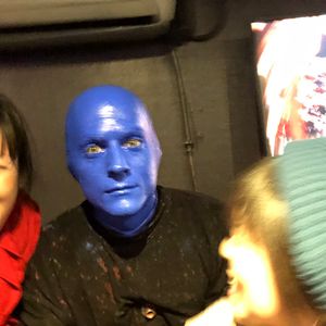 日本公演を観た事が無かったので、初めてのブルーマン!もっと音楽がいっぱいかと思ってましたが、かなりお笑い寄りでした。笑える部分もいっぱい有りましたが、食べ物を粗末にしたり、遅刻してきた観客をイジリ倒したり、観客にペンキかけてキャンバスに人型作ったりと、お笑いがちょっと古典的。子供達が舞台に向けて叫んだり、観客一体型な所は、さすがアメリカって感じでした。日本で観た事ある友達に、バナナピューレが飛んでくると聞いてたので、ちょっと潔癖な私は、2階席にしましたが、1階2列までは、皆さんカッパ着てて、それでも汚れてる方もいたので、2階にして大正解だったと思います。
