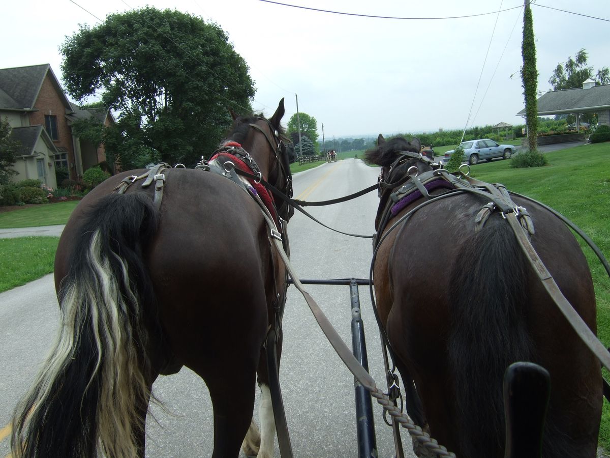 アーミッシュ村では馬車で村を一周しました。物珍しく面白い体験でした。アーミッシュの人たちは、写真を撮られるのが嫌いなので写真は控えるようにとの指示がありました。ですから馬車の写真しかありません。心に思い出で残せばいいのですが、物売りが乗り込んできたり、最後に御者にチップをあげたりといったことがありました。もう少し、テレビで見るようなアーミッシュの生活を見ることができたらよかったと思います。
