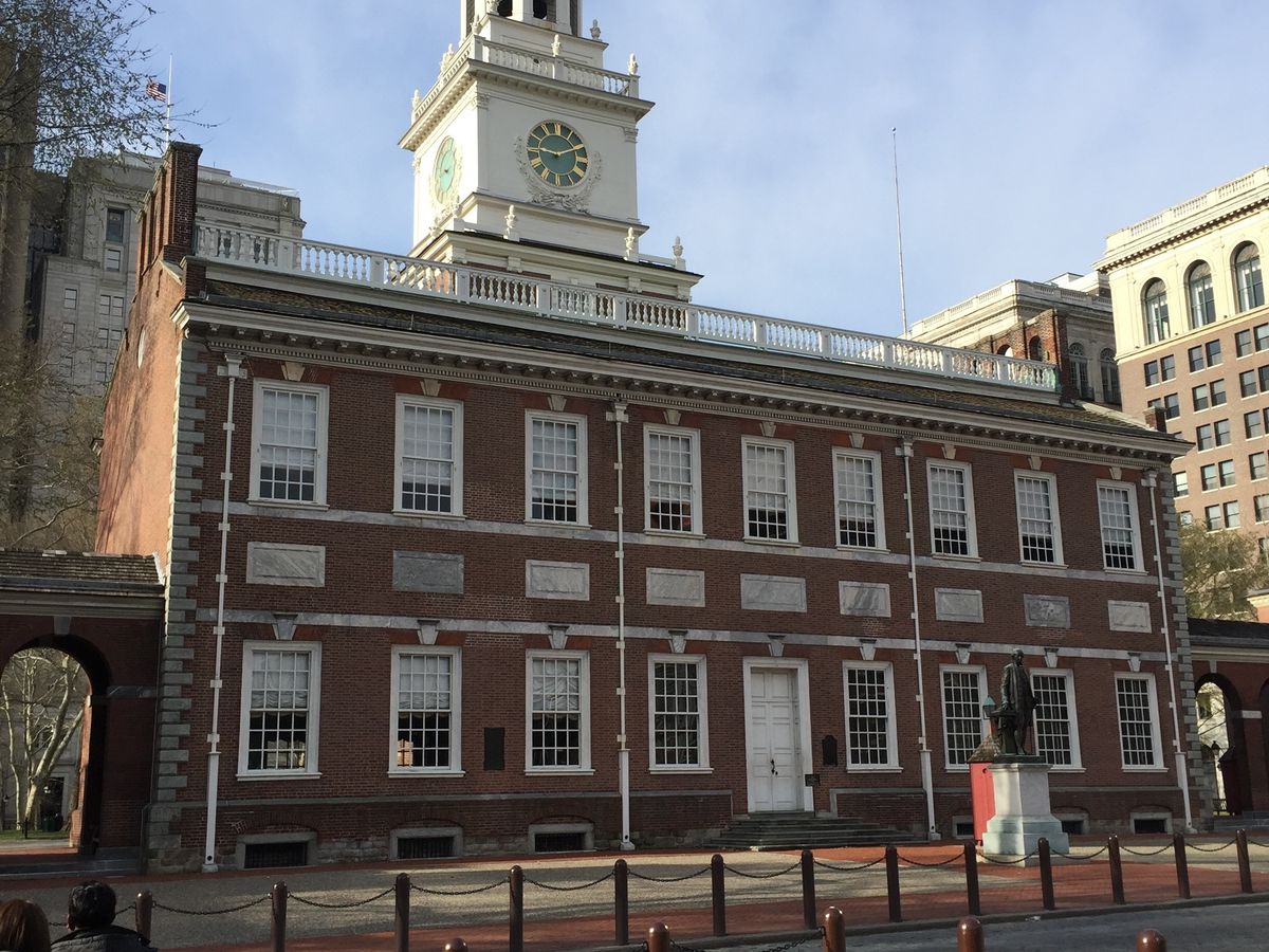 朝ごはん後、議会跡や自由の鐘、一番古い住宅32軒が並んでいるelfreth's alleyやアメリカ独立後初めての国旗を販売したとされる人の家、ロッキーの銅像があるフィラデルフィア美術館を観光。