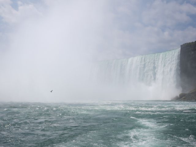 ニューヨークフリータイム7日間の中に、オプショナルツアーとして組み込みましたが、大正解でした。9月下旬でしたが暖かく天候に恵まれ、壮大な滝を目の前にして素晴らしい体験ができました。ガイドさんも可愛くて親切な方だったので、よかったです。ただ残念だったのが「霧の乙女号」です。滝をバッチリ見たくて、濡れる覚悟で甲板に上がったものの、船べりの良く見える場所は早い者勝ち。既にイタリア人観光客が陣取っている背後で、背の低い私はさっぱり見えず・・・でも、水しぶきだけは浴びるし・・・それが少し悲しかったです。甲板に椅子を設置して全員が座れるようにすれば見えるのに・・・と思いました。でも全体的に素晴らしかったので、ぜひ皆さんにオススメします。