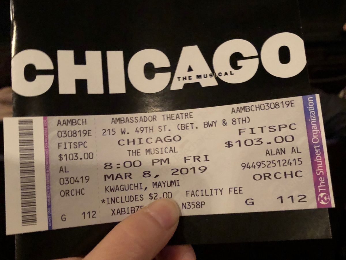 滞在中にもうどうしても、もう一回見たくなり、夜中3時にネット検索してたらベルトラ当日チケットを発見。週末土日だからチケット手配は無理だろうなと諦めかけてたので超ラッキー!しかも名作シカゴ。