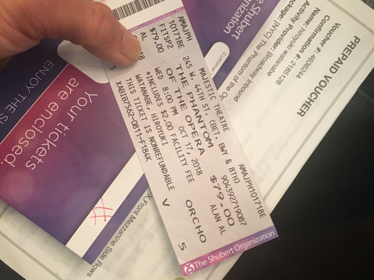 ミュージカルが大好きです。特にオペラ座の怪人はお気に入り。現地でチケットを取ることがほとんどですが、今回は、確実な日程があり、かつ確実に見たいと思い、veltraにお願いしました。