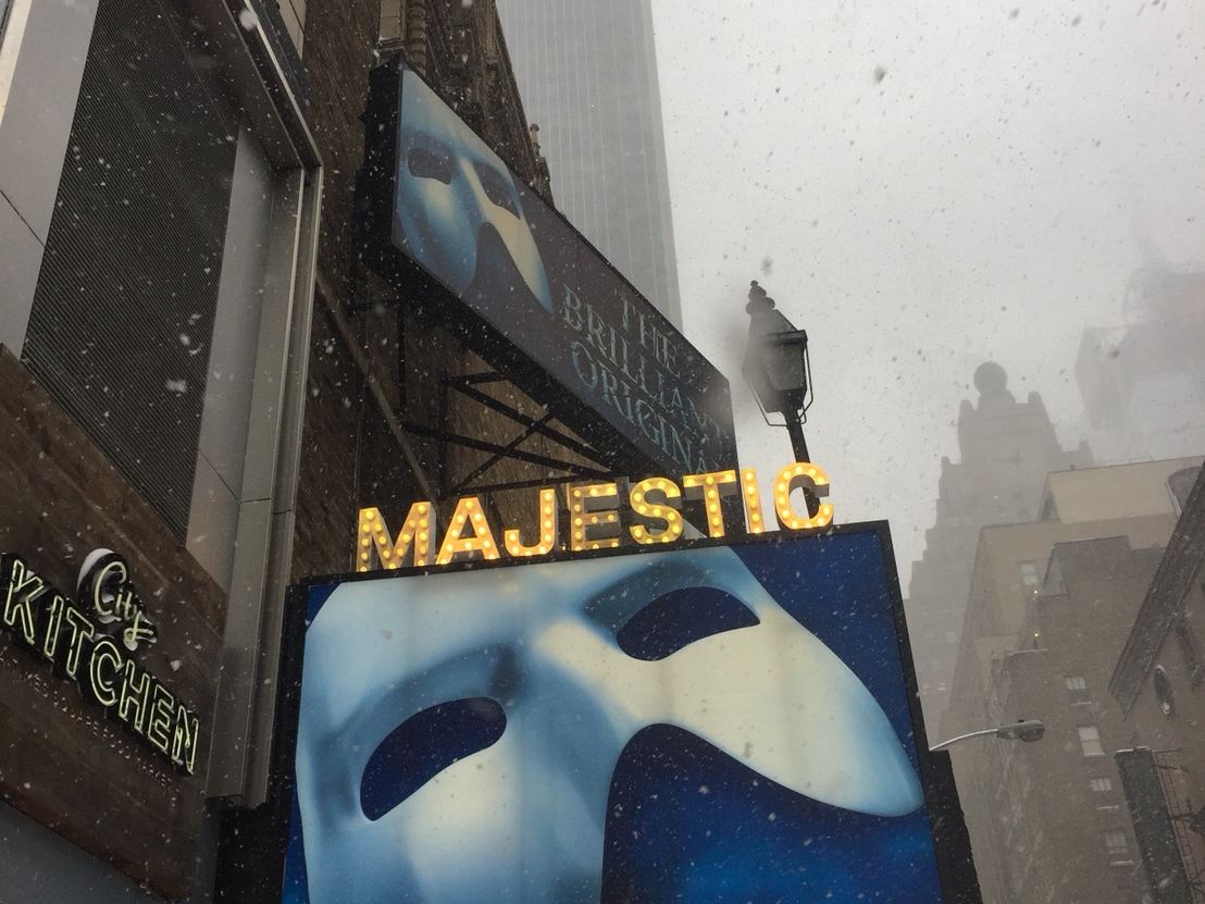 このミュージカルをマジェステック劇場で見るのは、2回目ですが、今回はA席のセンターの良い席だったので、まさに光と音とともにシャンデリアが頭上に落下してくる様で、ハラハラドキドキでした。
