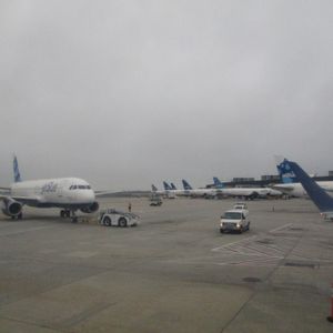 帰りのバッファロー空港からJFK空港への飛行機は噂通り、遅れました。