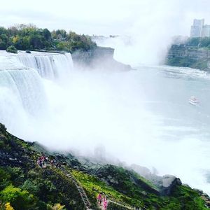 ニューヨークに一週間家族で滞在。個人で日帰りで効率よく周るのは難しいかとツアーに参加。空港待ち合わせに参加。朝6時30分に集合なので、UBERも考えたのですが、せっかくピックアップ費用をケチったので、安くあげようと地下鉄とエアトレインで移動。地下鉄は乗り放題なので、エアトレイン代10ドルで挑戦。タイムズスクエアから早朝のE線の地下鉄は治安と本当に動いているのか、心配だったけどwebの情報を駆使してたどり着けました。地下鉄がよくトラブルのでアプリで情報取っておけば、どれに乗れと指示してくれるので大丈夫です。ナイアガラツアー自体は、ガイドさんが一生懸命回ってくれるので、充分楽しめて感動しました。お昼のビュッフェはあまりたいした事はないですが、眺めは良いです。船も飛沫でえらいことになりますが、みんなワイワイ大喜びしてました。カッパも貰えるので、靴くらいかなあ。