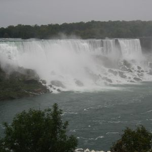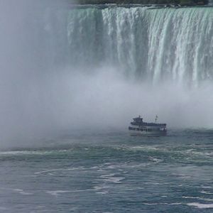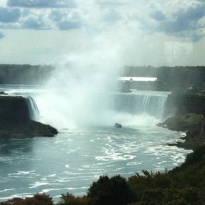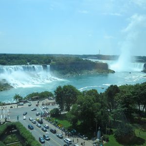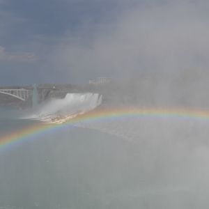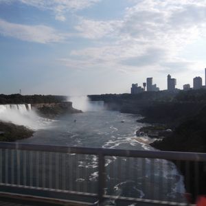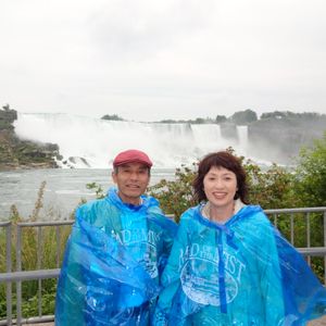 テレビではよく見るナイアガラの滝。子どもの時よりいつか行ってみたいと思っていました。それが今回実現!◆早朝、ケネディー空港に集合。飛行機、バスを利用してたどり着いたのは森林繁る大自然の中! ではなく、美しく整備された観光地でした。滝の周りは巨大ホテルがびっしり。滝で食べている町です◆まずはホテルの最上階で滝を眺めつつバイキング形式の昼食。相席は姉弟の若い2人。旅は道連れ。しばしアメリカでの体験談の交流◆その後、ガイドさんの案内で観光船乗り場へ。30分ほど列をなし、簡単なレインコートをもらって乗船。船上はさながら護送船の如き混雑。バス移動の際、ガイドさんより聞いていた、滝がよく見える場所をゲット。船は滝壺に向けてゆっくりと移動。水しぶきを浴びながら落水の轟きの中、シャッターをパチパチ。船上は歓声の渦。ここがこのツアー醍醐味。天気もよく水しぶきがまた心地良く実に爽快でした◆20分ほどのクルーズを終えて下船。時間に余裕があるとのことで、車で5分程の滝の落ち口へ移動。その後土産物屋案内、各自付近散策。ナイアガラを後にして、バスでバッファロー空港へ◆ここで予期せぬ事態に。ニューヨークへ戻る飛行機の到着が遅れているとの情報。ましてやいつ来るともわからないとのこと。とりあえずは腹ごしらえと、貰ったミールクーポンを持ってマクドナルドへ。既に片付けの準備中。不機嫌な中セットを注文。見れば他の店も閉店の気配。ふと、昼食で相席した姉弟のことが気になる。探してみると、待合のイスで仮眠の準備。「店が閉まるよ。食べるものだけ調達を・・・」と告げると、急いで行き、食べ物を手に戻ってきて「ありがとうございました。閉まるところでした。」◆結局、飛行機は数時間の遅れ。ケネディ空港に深夜到着。最近は安全になったとは聞いたが、娘と2人での深夜の地下鉄は避け、タクシー乗り場へ。定額の60ドル支払いホテルに戻れたのは夜中2時前。身の危険のないトラブルは思い出の一つと諦め、印象深い一日を終えました◆時間も費用もそれなりですが、行って良かった。そして、もし問われれば、「せっかくニューヨークに行くのなら、ナイアガラも見ておけば。」というのが私の感想です。では、グッドラック◆因みに、NHK「坂の上の雲」で高橋是清と秋山真之がナイアガラの滝を見上げるシーンは「アメリカ滝」で今回のツアーは「カナダ滝」です。どちらも