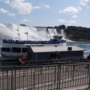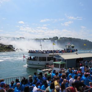 ニューヨークフリータイム7日間の中に、オプショナルツアーとして組み込みましたが、大正解でした。9月下旬でしたが暖かく天候に恵まれ、壮大な滝を目の前にして素晴らしい体験ができました。ガイドさんも可愛くて親切な方だったので、よかったです。ただ残念だったのが「霧の乙女号」です。滝をバッチリ見たくて、濡れる覚悟で甲板に上がったものの、船べりの良く見える場所は早い者勝ち。既にイタリア人観光客が陣取っている背後で、背の低い私はさっぱり見えず・・・でも、水しぶきだけは浴びるし・・・それが少し悲しかったです。甲板に椅子を設置して全員が座れるようにすれば見えるのに・・・と思いました。でも全体的に素晴らしかったので、ぜひ皆さんにオススメします。