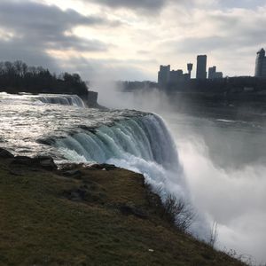 凍ったナイアガラはまた絶景と聞いて参加したものの、生憎の暖冬で雪景色も見れず少し残念でした。とは言えダイナミックな自然の力にはただただ感心するばかり。滝は日々浸食されていて、数百年前はもっと下流にあったと聞くと、現在の方がスケールは大きく、それを見ることが出来る我々は人生の幸運に感謝するばかりです。百年後はまた違ったナイアガラの滝になっているそうです。さて、ガイドさんはとても丁寧に説明下さいました。滝についてもさることながら、道中はアメリカの歴史や所縁の人物エピソードも随所に説明頂きとても勉強になりました。あのテスラはここが発祥なのですね。帰途の最後、マンハッタンに入るときにも絶景が待ってますよ。座席は左側をお勧めします。