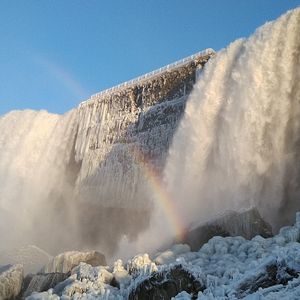 本命の滝は最後になりましたがカナダ側の滝が見れる唯一のポイントは滝のしぶきで完全結氷していて入れませんでしたが、アメリカ側の滝もなかなかなもので滝の下まで降りることができ、樹氷と滝しぶきの虹など小さいながらもかなりの迫力でした。