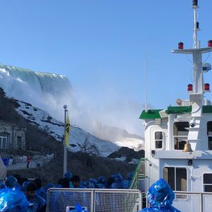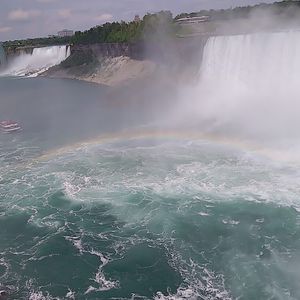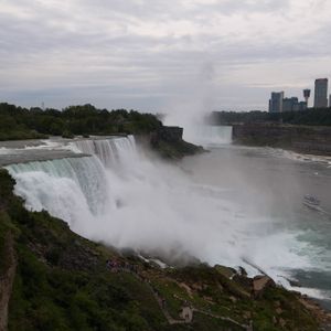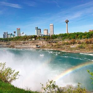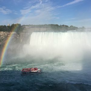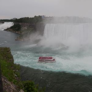 ナイヤガラの滝を いろいろな鑑賞スポットから味わえます。船で滝の間近にも。アメリカ、カナダの両サイド。