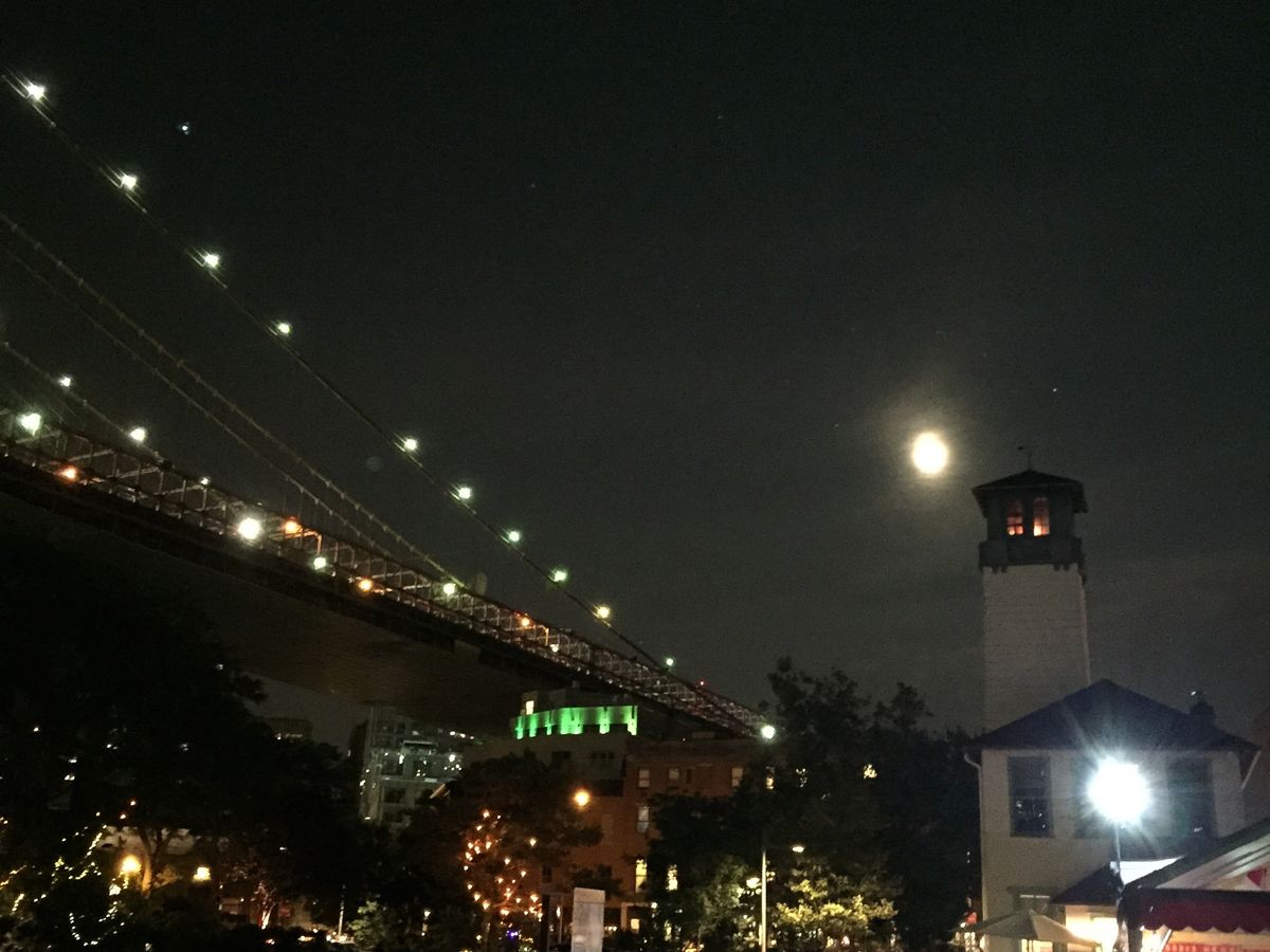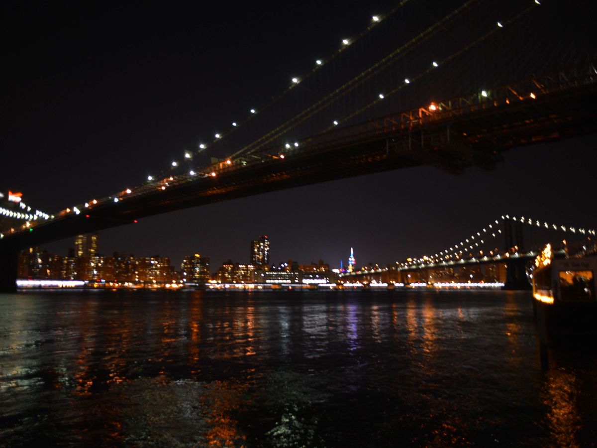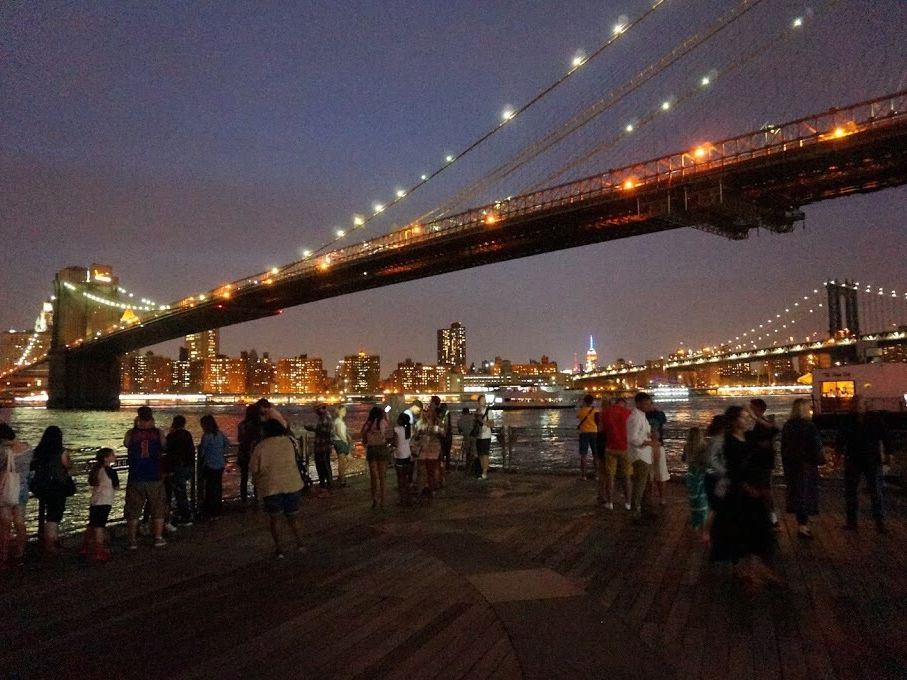 ブルックリンブリッジのふもとからの夜景は、とっても綺麗でした。光がたくさんあるので、写真撮影にコツが必要。