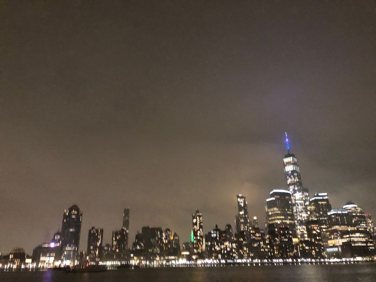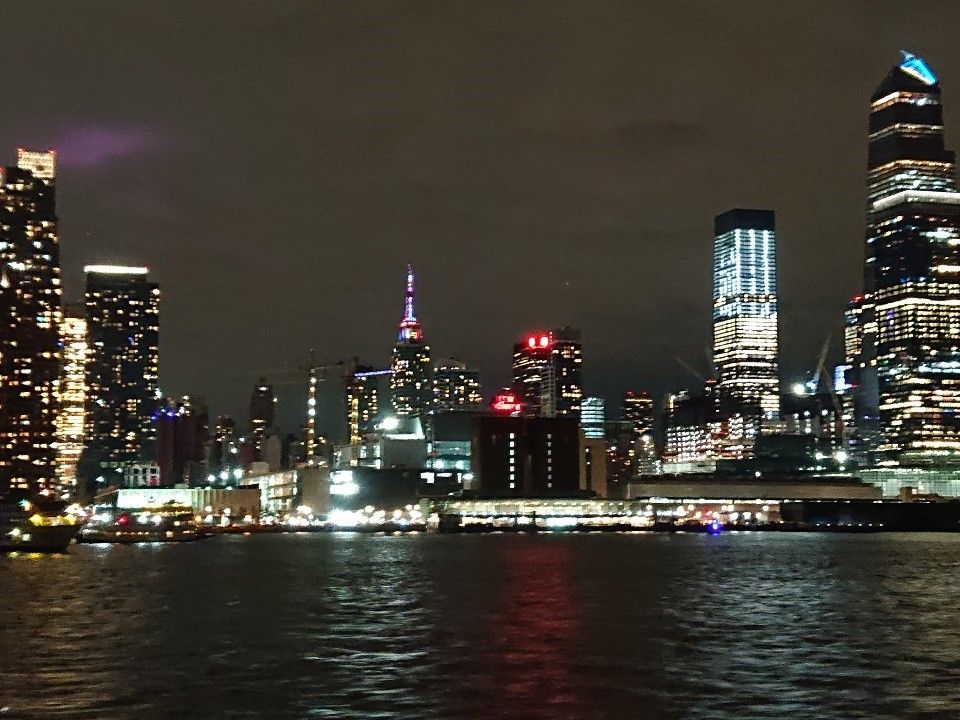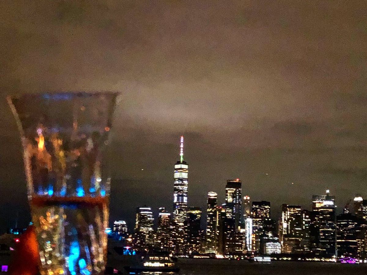 時間よりだいぶ前からかなりの人数が並んでました。時刻ぴったりに乗船開始。1船200人くらいでしょうか。1階がダンスフロアで2階はまったりフロア。端に折り畳みパイプ椅子が立てかけてあって窓側の場所のとりあいになっていました。(並べておいてくれたらいいのに)フリードリンクもメニューは無く適当。フードはサラダとチーズ程度。稀に揚げ物が配布されるが全然数が足りていない様子。1階では踊り狂っている人がいましたが、2階はまったり夜景を眺める。カウントダウン頃にシャンパンを渡され外に出ました。花火は自由の女神側からあがるのでそっちに行くといいです。かなり遠くでしたが感動しました。花火が終わったらそそくさと港に戻ります。船を降りたら行きに撮られた写真が背景合成され販売してました。なんと50$。凄い金額。お値段以下な内容でしたがまったり楽しめて良かったです。