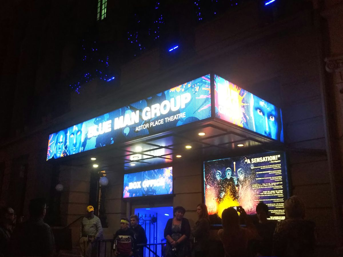 英語がわからなくても楽しめるショーで探して、ブルーマンを観ることにしました。