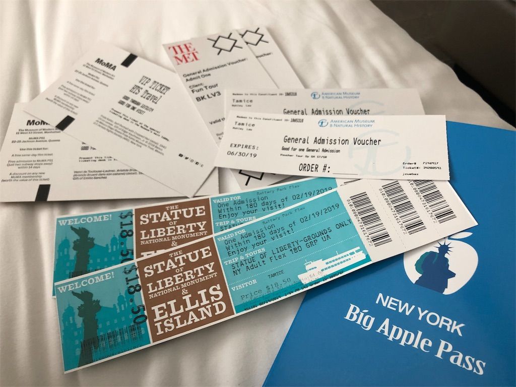 1週間の滞在予定だったのでビックアップルパス(5)を頼みました。「イントレピッド会場航空宇宙博物館」、「MOMA」、「メトロポリタン美術館」、「アメリカ自然史博物館」、「自由の女神&エリス島への往復フェリー」にしました。日本語で説明を聞くことが出来ました。帰りにお水を貰いました。