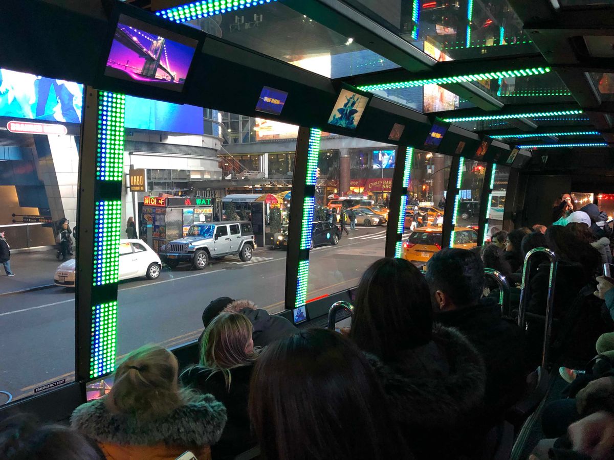 ニューヨークの観光地巡りに何箇所か途中でパフォーマンスを交えたバスツアー。道路事情で中弛みがあったり、アメリカンジョークが難しいかったり、と家族で楽しめるアトラクションではなかった。