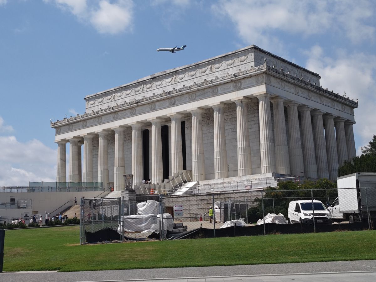 夏の炎天下、特にリンカーン記念堂や国会議事堂、ホワイトハウスの周辺に日影がなくて、日傘が必要だと感じました。アメリカで日傘は邪道だと思い、持って行かなかった事を後悔しています。晴天時は、日傘必須です。