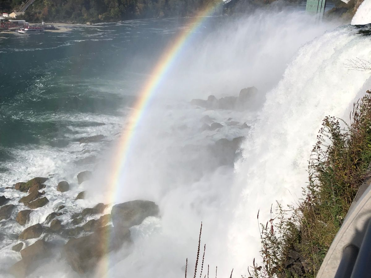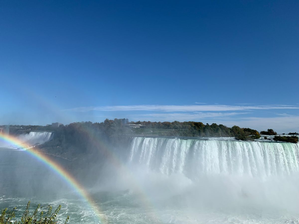 当初は10/16に行く予定でしたが、週間天気予報を見て、締切ギリギリまで待って10/15に行くことにしました。朝6時JFK集合は少し辛かったですが、ナイアガラの滝に着いた時は、天気予報どおり、晴天でとても感動しました。アメリカ側から乗った船では、写真を撮りまくるピンクのレインコートを着た妻は、少女のようで可愛かったです。また、カナダ側からは滝の飛沫からくっきりとした虹が見られ、たまにはダブルになっていて、思い出深い、本当に素晴らしい旅でした。