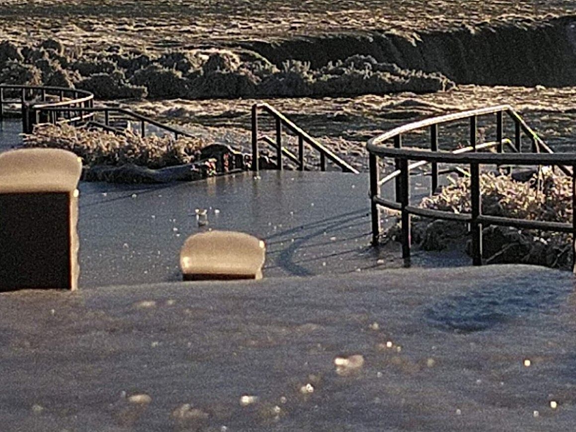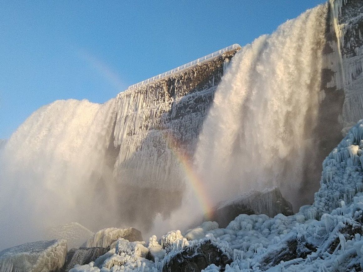 本命の滝は最後になりましたがカナダ側の滝が見れる唯一のポイントは滝のしぶきで完全結氷していて入れませんでしたが、アメリカ側の滝もなかなかなもので滝の下まで降りることができ、樹氷と滝しぶきの虹など小さいながらもかなりの迫力でした。