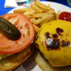 食事も美味しかったです。アンガスビーフのバーガーやデザートはボリューム満点でした。