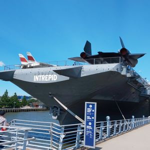 滞在4日目、午前中にアメリカ自然史博物館に行きました。バタフライやティーレックスの特別展は、City Passでは入れなかったのですが、娘はどうしてもバタフライの展示が見たくて入口をうろうろしていたら、係員の方が入れてくれたらしく(子どもだったからでしょうか…)素晴らしい展示に感激してました。自然史博物館を満喫した後、まだCity Passで行けるところは…と考え、主人の希望でイントレピット海上航空宇宙博物館に移動しました。自然史博物館の歩き疲れもあったので、タクシーで移動したらすぐに到着。セスナや戦艦、スペースシャトルなど、リアルにすごい展示品ばかりで主人は喜んでいましたが、娘たちは他の美術館ほどの興味はないようでした。