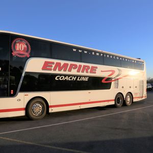 55にピックアップ予定に対して、2~3分遅れ。バスは2階建てでWifiやお手洗いも整備しているので、長時間でも安心。