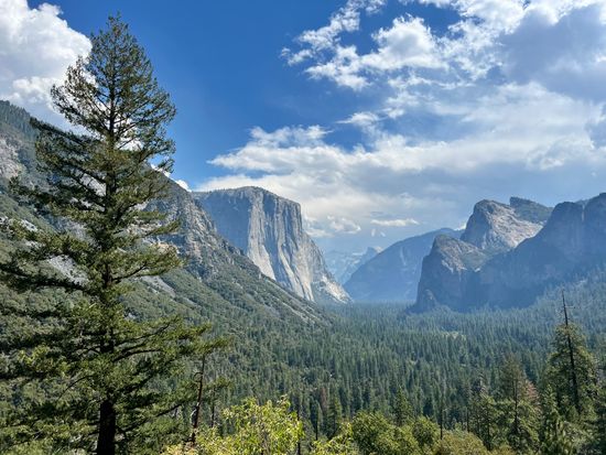 ヨセミテ国立公園の景色を一望するトンネルビューへご案内します。ハーフドーム、エルキャピタン、グレーシャーポイント、カセドラルピークなどを背景に写真撮影をどうぞ。