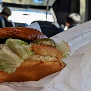 休憩場所や昼食の内容はガイドやドライバーの方によって変わるようです。私達は片道2回ずつ、道の駅のような施設やスーパーで休憩し、昼食にはドライバーさんオススメのチーズバーガーとポテトをいただきました。