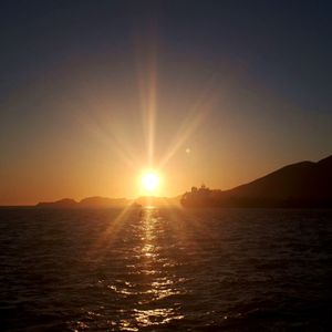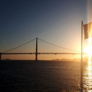 夕日に照らされたゴールデンゲートブリッジが、美しいオレンジ色になります。