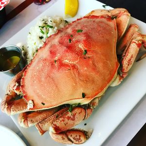 レストランはとても雰囲気が良く、窓からの景色も綺麗でした。サラダ、クラムチャウダー、カニが1人まるごと1杯、デザートも付いて、かなりボリュームのあるディナーでした。どれもとても美味しかったです。カニはかなりの大きさで食べきれるか不安になりましたが、本当に美味しくて無心でペロリと食べてしまいました♫