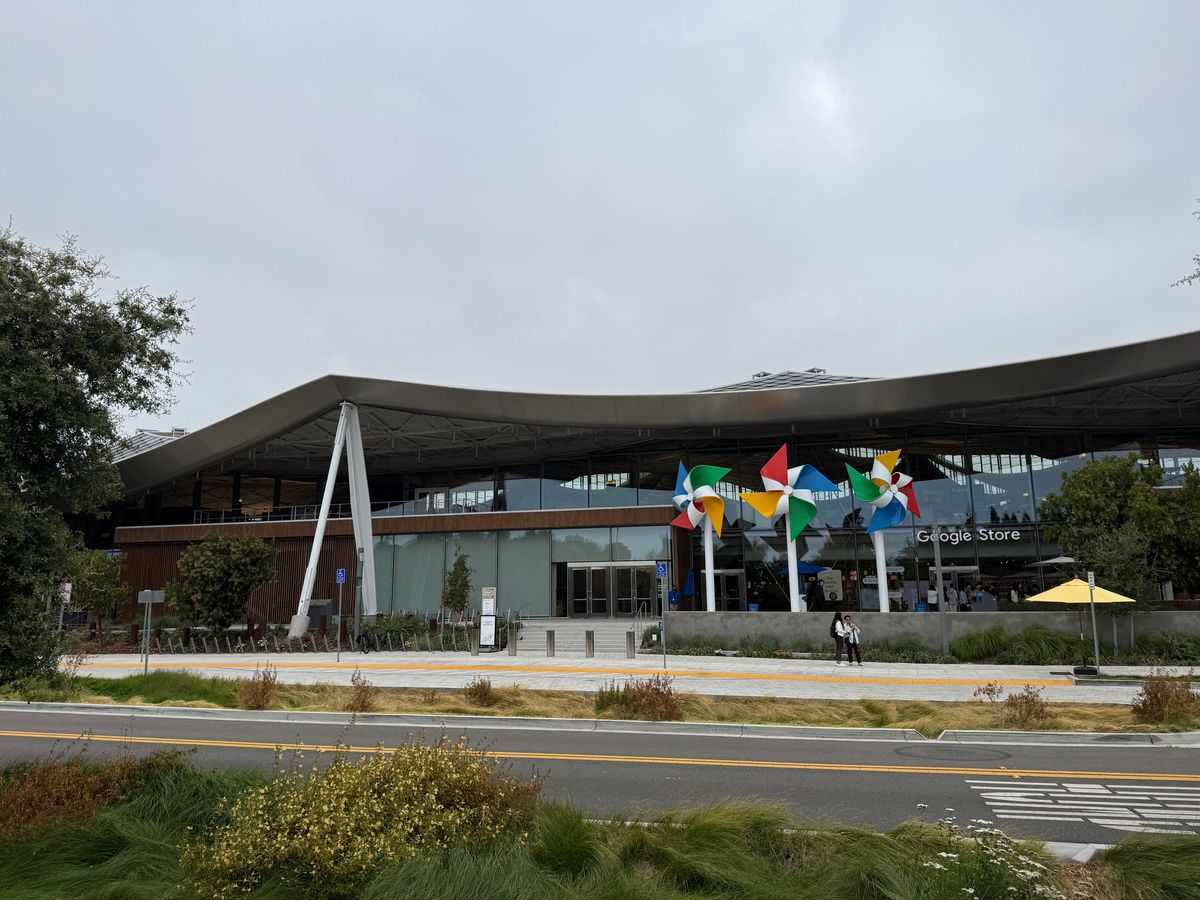 朝、集合場所に指定時間(出発15分前)に着きましたが、誰もいなくて心配になり、周囲の人に確認してしまいました。出発時間より少し遅れて、バスが到着。ガイドさんの登場です。予定などの説明があり、いよいよ出発。最初にグーグル、次にコンピューター歴史博物館、パロアルトの街で各自昼食休憩、その後にスタンフォード大学、アップルビジターセンター、最後にLAX近くのメタ本社に寄るというルートでした。価格面は円安もあって、ちょっと高い気もしますが、レンタカー以外では、一人で回るのは難しいと思い、参加しました。グーグルのトートバッグやアップルのTシャツ、スタンフォード大学のグッズなど、お土産も買うことができて、よかったです。