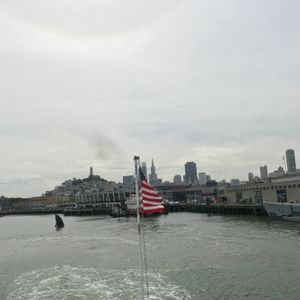 そして、橋を背中にした後は、アルカトラズ島を右手にゆくっりと回りながら、ベイブリッジが見えてきます。その後、街を前方に見ながら停泊所へ戻ります。 60分のtクルーズはあっと言う間。夕方の時間は、霧がかかったり気温が下がることが多いので、早めの時間に参加されることをおすすめします。 唯一、音声ガイドは日本語、英語共に聞けませんでした。(ほぼノイズ)他の方のコメントにもあったので、できれば早めに対応していただきたい点です。