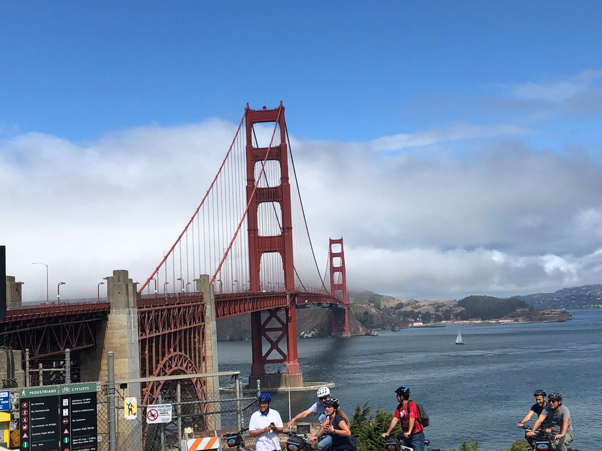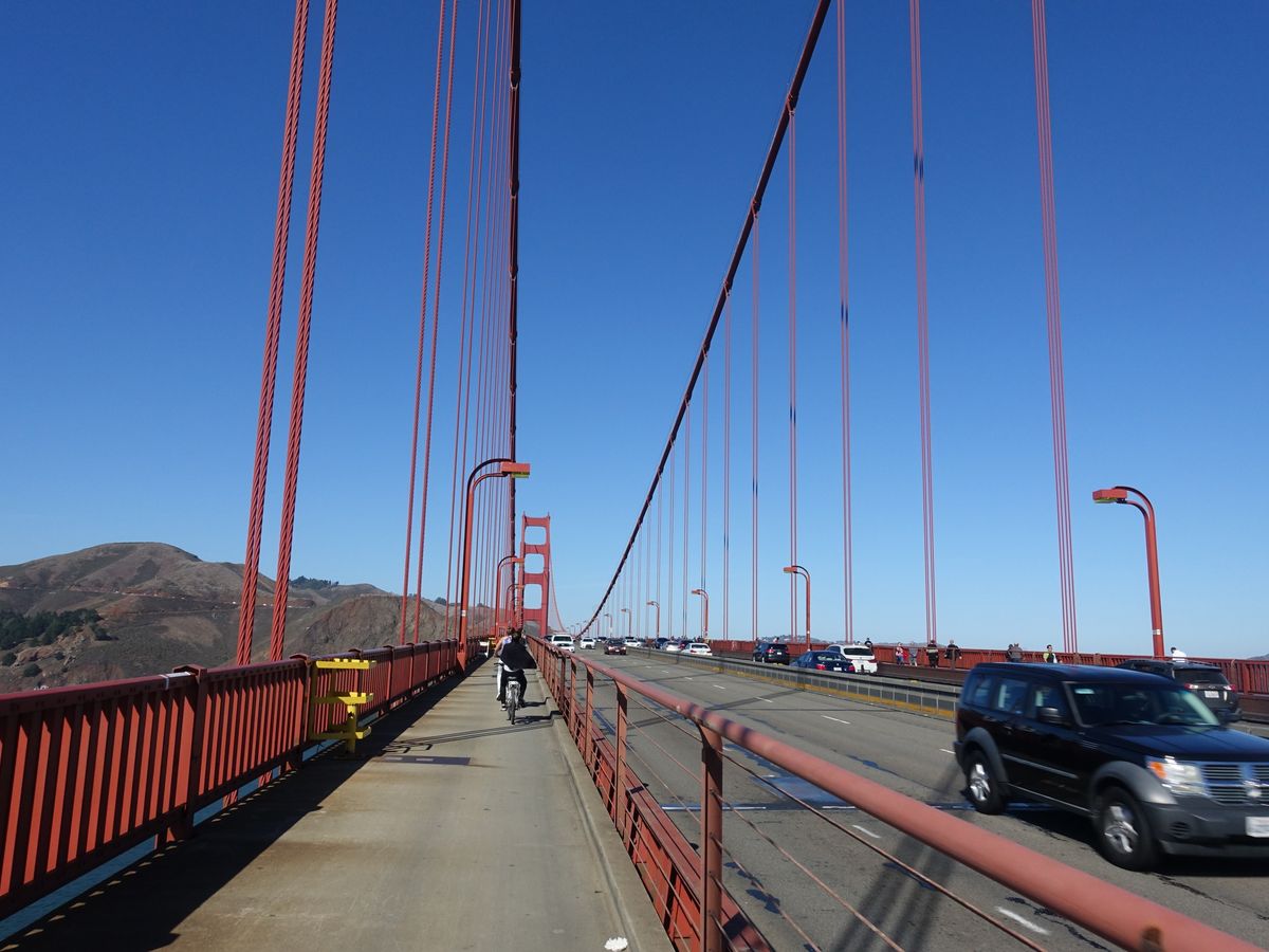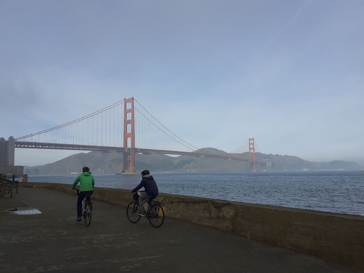 フィッシャーマンズワーフからサイクリングでゴールデンゲートブリッジを渡りました。アップダウンがあり、道のりは楽ではありませんがとてもいい経験ができました。レンタル屋は付近にいっぱいあるので、場所は事前に確認しといたほうがいいかと思います。あと、私の場合、保険で追加料金を取られました。。