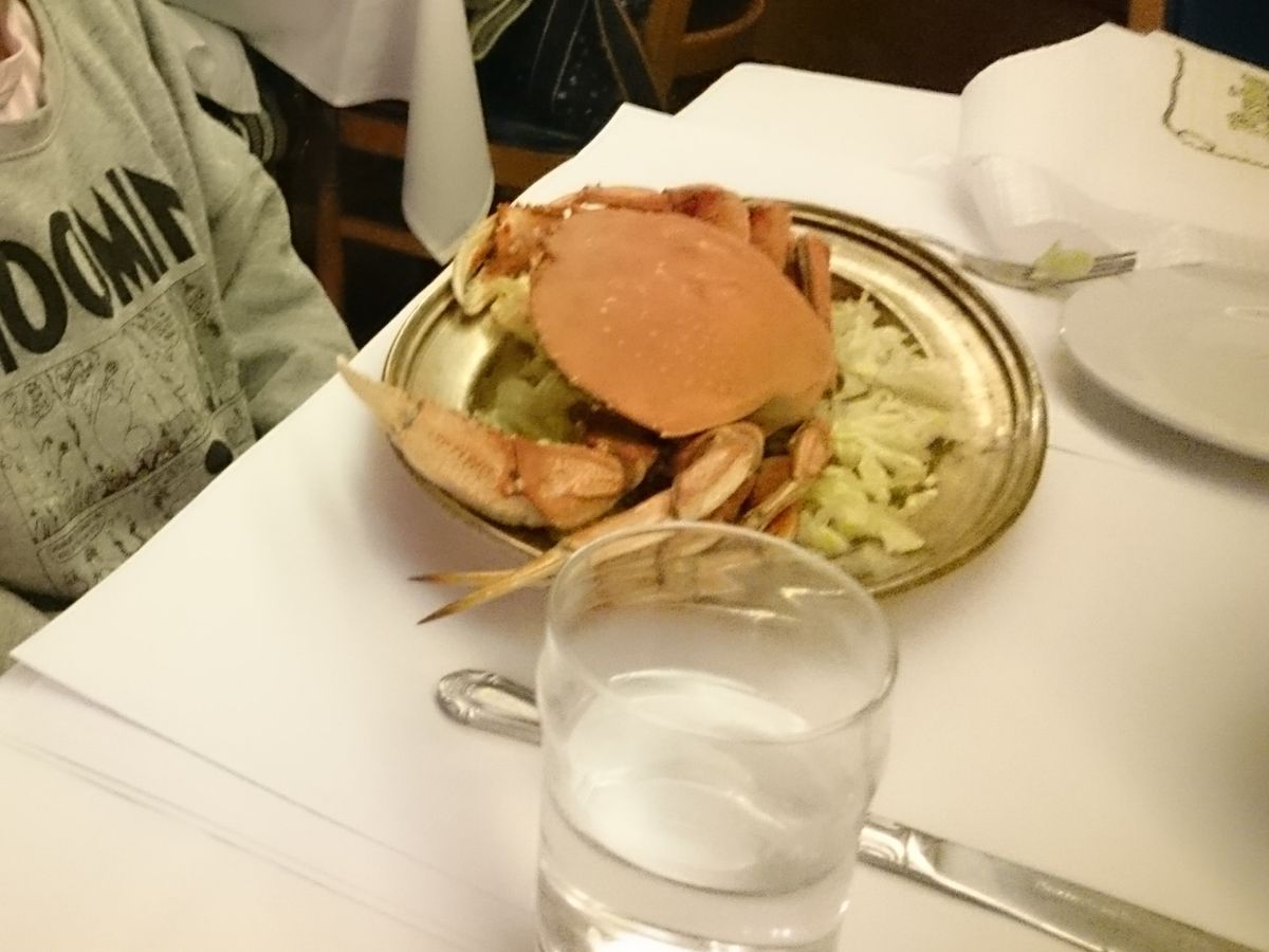 レストランのコースはサワードブレッド、クラムチャウダー、サラダ、蟹1人1杯!デザートにアイスクリームと紅茶かコーヒーという盛り沢山の夕食でした。とにかくカニが!大きい!食べるのに必死でした笑